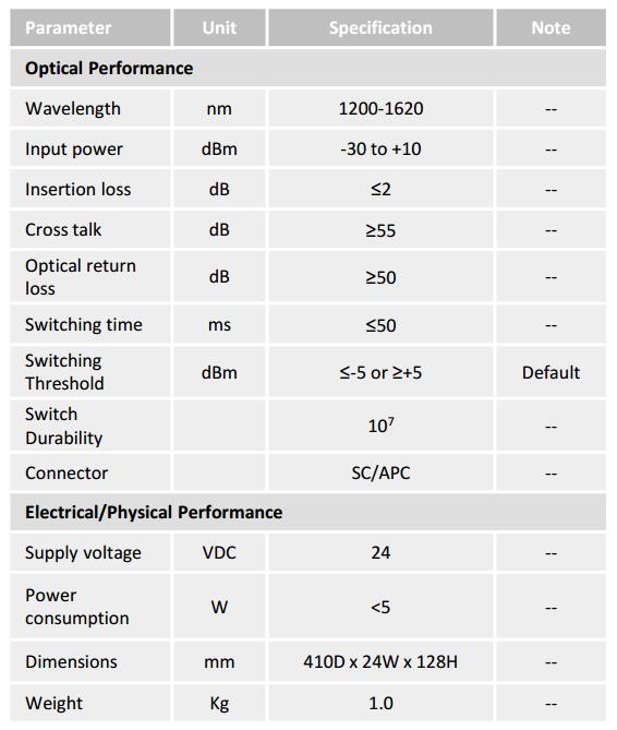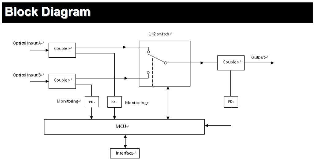 GSDT-OSW is a rack mount, A/B Style optical switch. It provides users monitoring and switching capabilities for fiber networks. The Model automatically switches from the primary optical source to the secondary optical source whenever the primary source is interrupted. The user can set the threshold criteria to decide when a switch occurs. After a switch has occurred, when the primary source again exceeds the user-defined threshold, normal (un-switched) operation is resumed. An alarm informs the user when either the primary or secondary input levels fall below the preset limit.