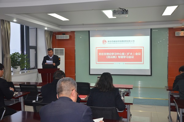 為深入貫徹落實習(xí)近平總書記在十九屆中央政治局第二十次集體學(xué)習(xí)時的重要講話精神,持續(xù)提升集團員工法治素養(yǎng),扎實推進法治擔(dān)保工作建設(shè),11月26日,集團以黨總支中心組學(xué)習(xí)(擴大)會的形式,專題學(xué)習(xí)由中宣部、司法部、全國普法辦共同制作的民法典公開課之一《民法典與社會生活密切相關(guān)的幾個問題》。